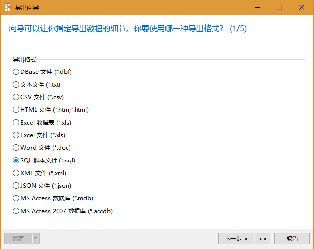 1、Navicat 连接数据库,选中表,右键导出向导,选择导出格式为 SQL 脚本文件 (*.sql),下一步,选择要导出的表,全选处下来,导出到相同文件夹,下一步下一步,开始,这样就能在选择的文件夹下看到导出的表数据 insert sql 文件。